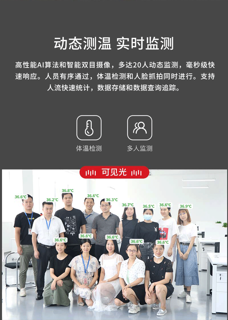 ·被測人員要求:戶外陽光照射后,或者劇烈運動后,需在室內環(huán)境平靜適應5分鐘后進行測試;人員從戶外場景進入室內,建議經過回廊緩沖至少10秒鐘后,再步入檢測位置,如果室內外溫差較大時,建議在室內停留2~3min再行檢測;確保待測人員整個面部處于設備攝像視野內,同時面部及額頭不能被遮擋(帽子、圍巾、墨鏡、面具、退燒貼等可能遮擋面部的物件,建議先提前摘下,適應0.5-1分鐘后再進行測試。)